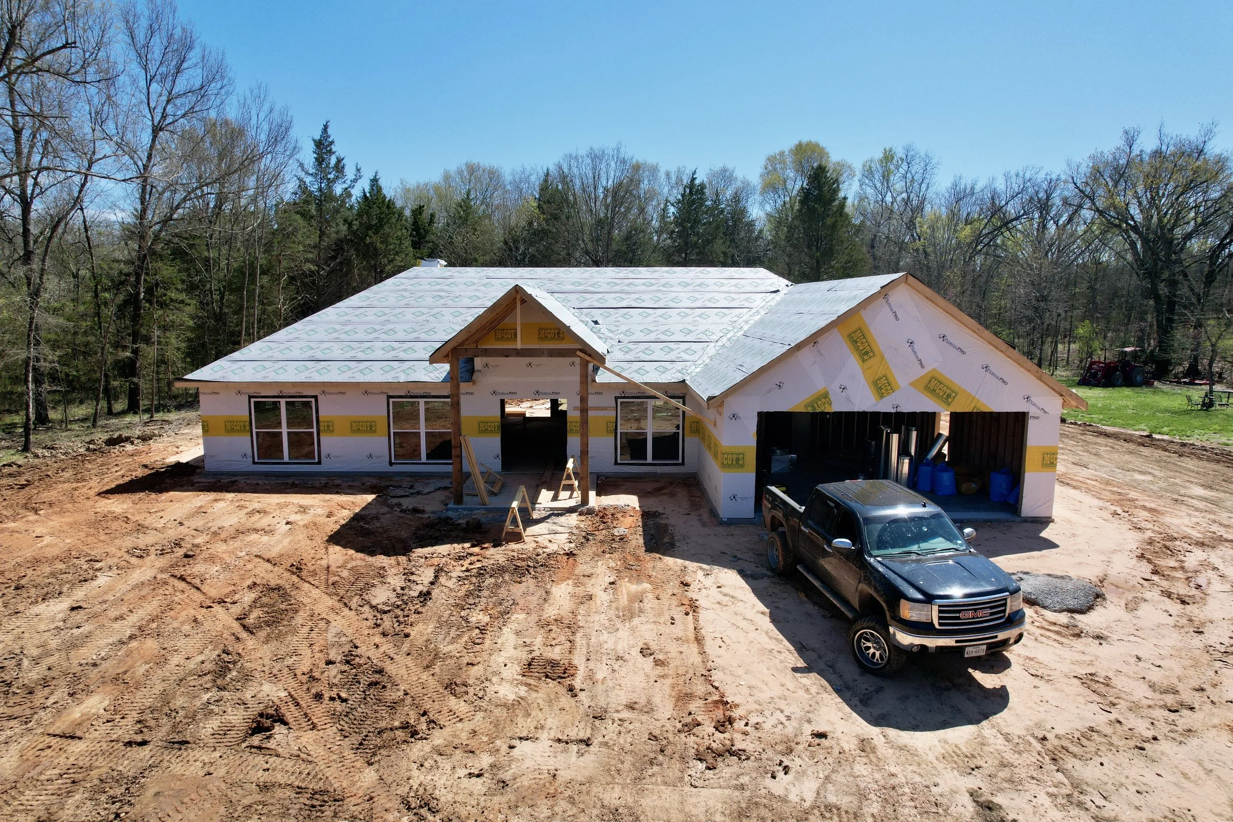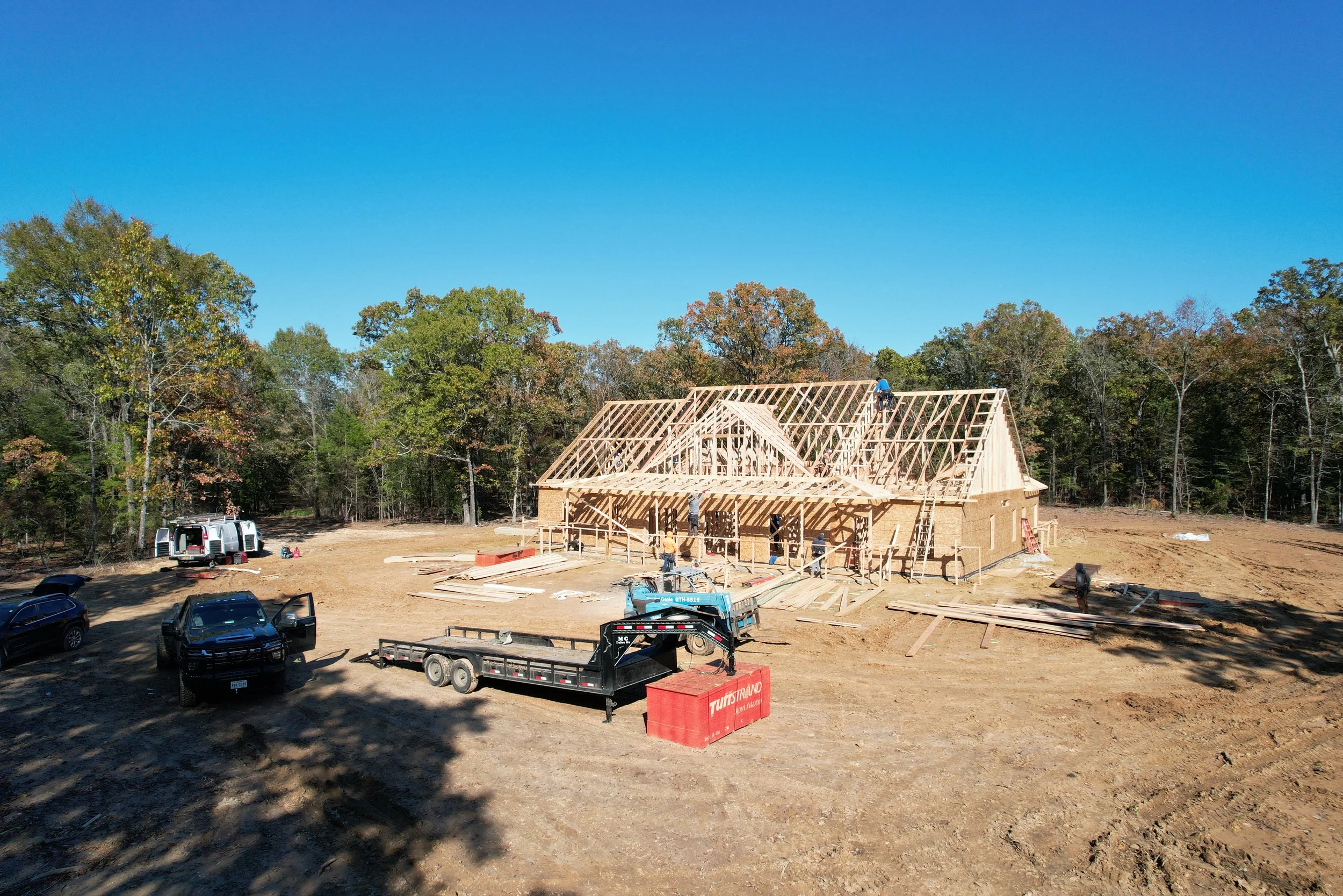 This is a framing picture of a custom home being built by Bobby Smallwood Construction in Northeast Texas.